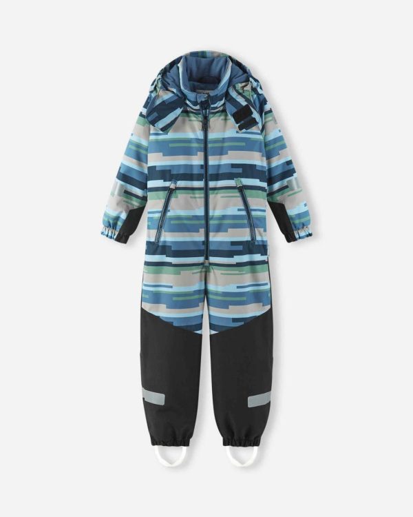 ReimaTec snowsuit for kids’ winter play. Fully waterproof and with durable reinforcements. Contains recycled materials. Visible reflective details.