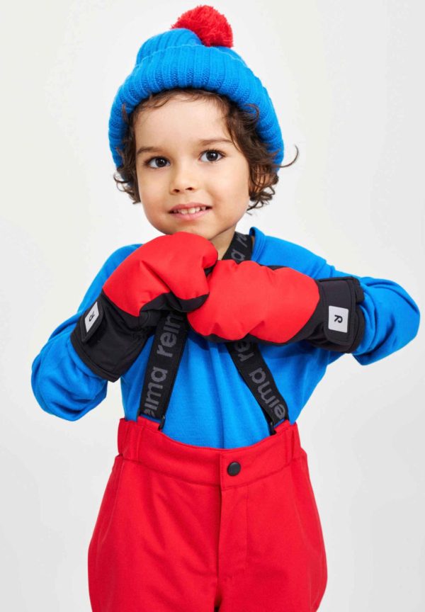 Waterproof, warm ReimaTec mittens for kids. Finished with an easy hook-and-loop strap.