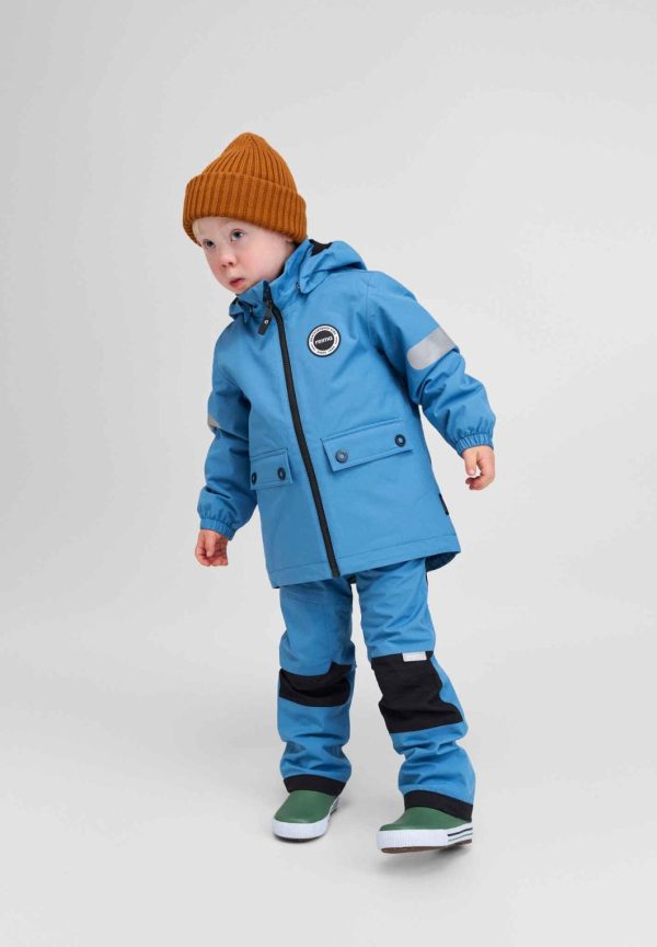 Keep your young ones dry and comfortable on rainy days with the kids waterproof pants Sampu. Made from durable yet breathable waterproof ReimaTec fabric, these pants seal out rain while allowing body moisture to escape. Reinforced panels in high-wear areas provide extra protection against tears and abrasions. An adjustable cord at the leg openings ensures a snug, customizable fit, while a zip pocket and two side pockets offer convenient storage for small essentials. Whether splashing in puddles or hiking through the woods, the kids’ waterproof pants Sampu let your child play outdoors freely in any weather.